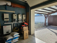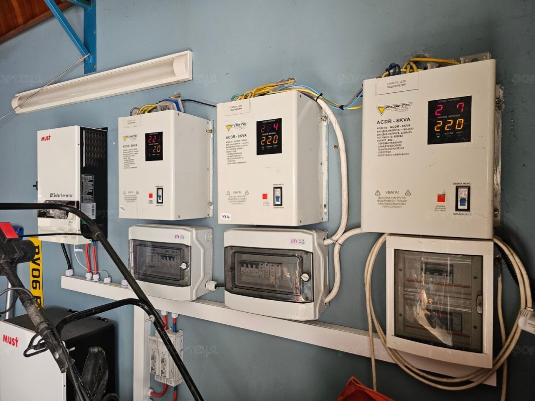Действующая солнечная электростанция мощностью 15 квт (трехфазный «сетевой» инвертор, полностью перекрывает собственное потребление + излишки на продажу по «зеленому» тарифу, зафиксированному до 2030 г). Доход от продажи излишков полностью перекрывает затраты на газ. + однофазны «гибридный» инвертор с аккумулятором на 10 квт (резервное питание электричеством всех необходимых потребителей в период отключений, до 24 часов (зависит от уровня нагрузки)