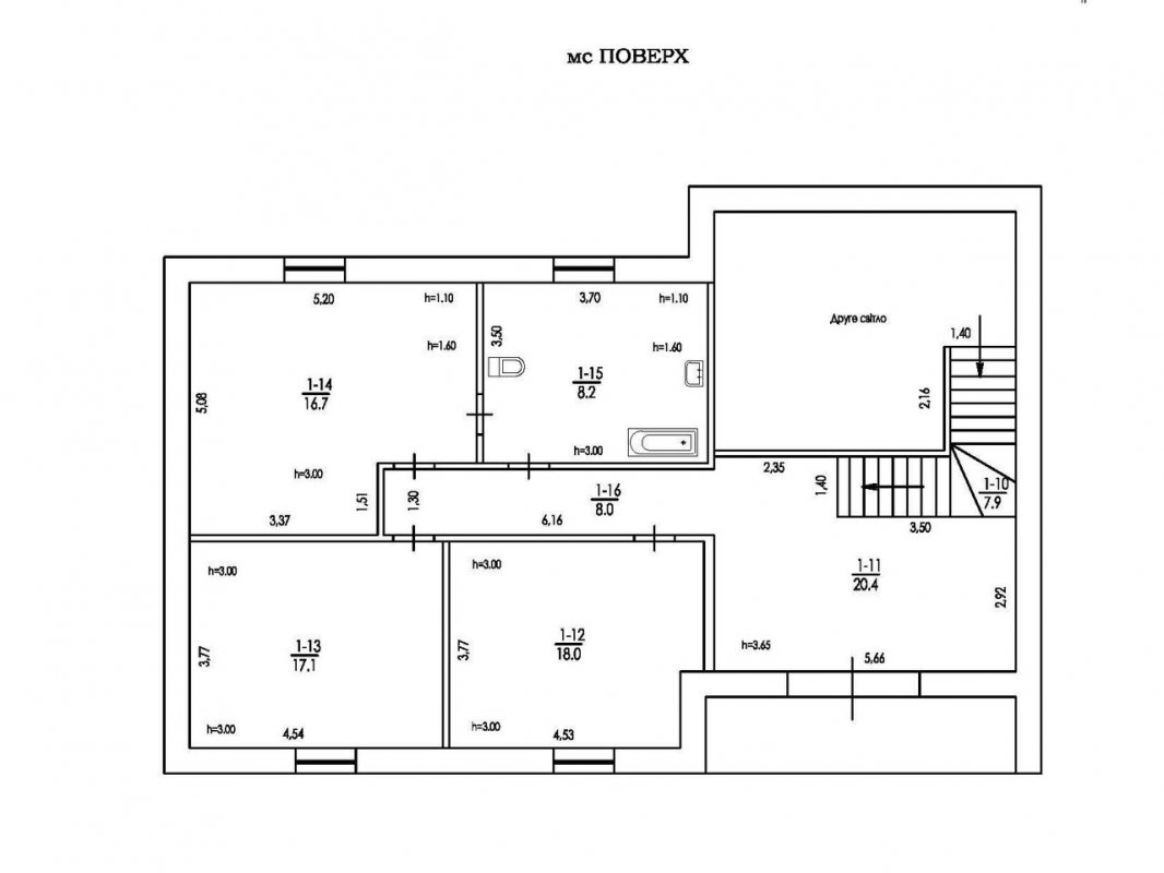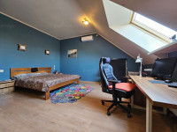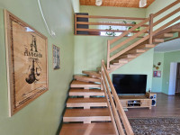 2 этаж (мансардный): антресоль с выходом на лоджию, три раздельные комнаты (из одной – непосредственный выход в санузел), просторный санузел с ванной, выход на чердак (складная чердачная лестница, площадь чердака – 5*16 = 80 м. кв).