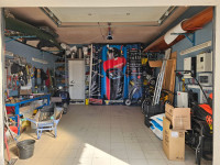 Отапливаемый гараж 29 кв. м, со стеллажами и настенными кронштейнами для хранения автошин, роллетные ворота с электроприводом, дистанционный пульт управления.